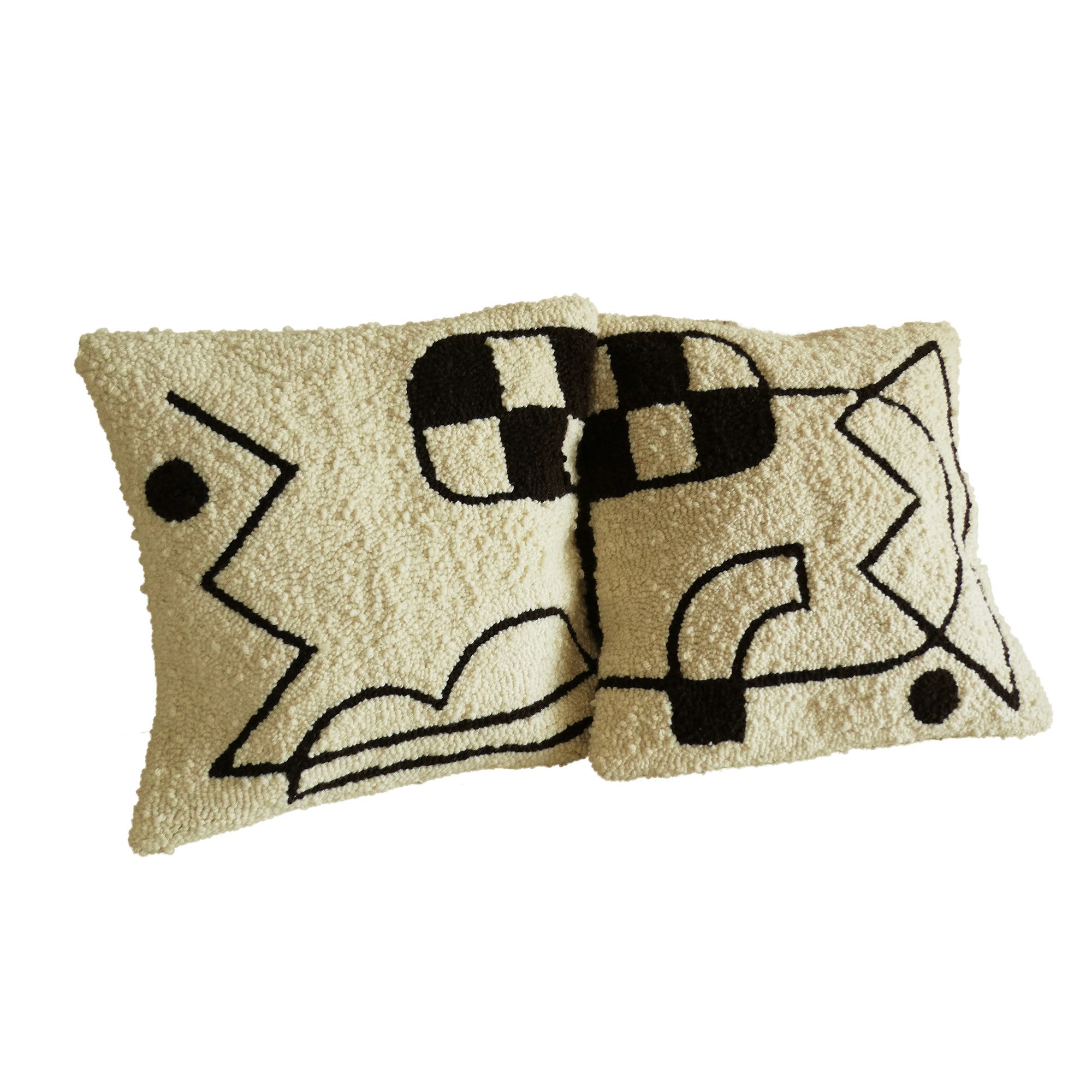 Hand tufted cushion cover for 45cm x 45cm filling. Loop pile textured surface, linen fabric envelope closure. Available in pairs or singles. * €100(Single) / €185(Pair)