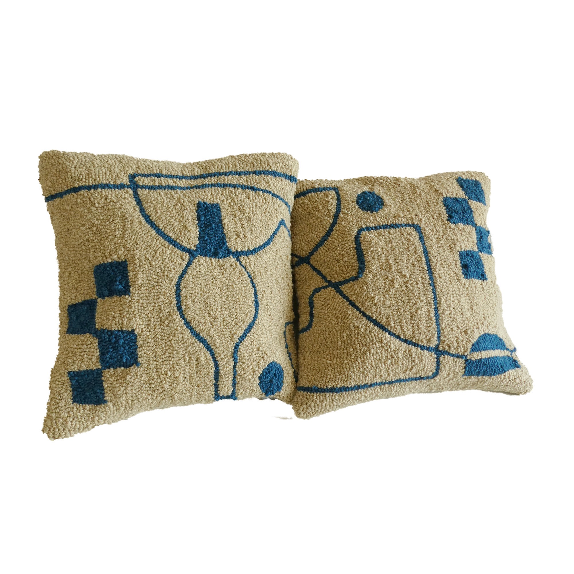 Hand tufted cushion cover for 45cm x 45cm filling. Loop pile textured surface, linen fabric envelope closure. Available in pairs or singles. * €100(Single) / €185(Pair)